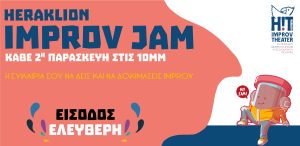Το Heraklion Improv JAM είναι μια εβδομαδιαία παράσταση Improv Theater στο θέατρο της Heraklion Improv Theater. Είναι μια μοναδική ευκαιρία για να δοκιμάσεις το Improv, να γελάσεις και να είσαι σε ένα “no-stress” περιβάλλον.
